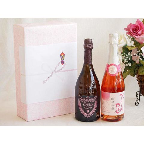 正規ドンペリニヨンロゼギフトボックス2本セット シャンパンドンペリニヨンロゼ(フランス)750mlスパークリングロゼワイン酵母の泡ベーリーAロゼ(やや辛口)(山梨県)750ml