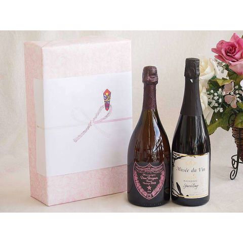 正規ドンペリニヨンロゼギフトボックス2本セット シャンパンドンペリニヨンロゼ(フランス)750mlスパークリング白ワインブラッククイーン辛口(長野県)750ml