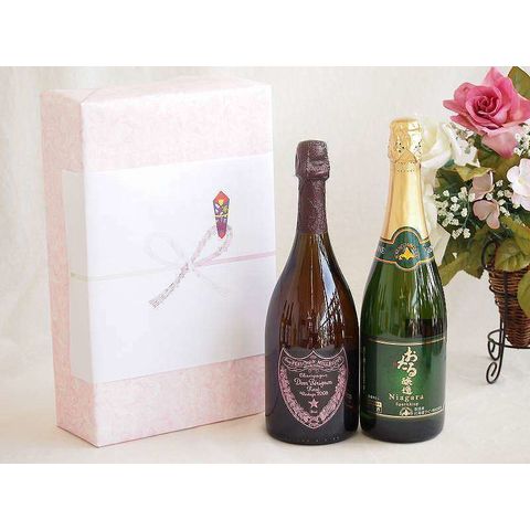 正規ドンペリニヨンロゼギフトボックス2本セット シャンパンドンペリニヨンロゼ(フランス)750mlスパークリング白ワインおたる醸造ナイアガラ(やや甘口)(北海道)750ml
