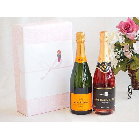 ヴーヴ・クリコ白ギフトボックス2本セット シャンパンヴーヴークリコブリュット(フランス)750mlスパークリングロゼワイン塩尻コンコードロゼ(長野県)720ml