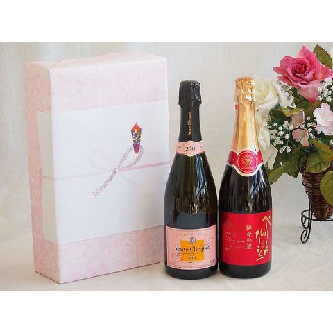 ヴーヴ・クリコ ロゼ ギフトボックス2本セット シャンパンヴーヴークリコロゼ(フランス)750mlスパークリング赤ワイン酵母の泡ベーリーAルージュ(山梨県)750ml