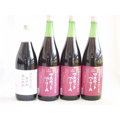 大容量ボトル4本セット(山梨県産葡萄100% マスカットベーリーAライトボディ 赤ワイン 酸化防止剤無添加 赤ワイン やや辛口) 1800ml×4本