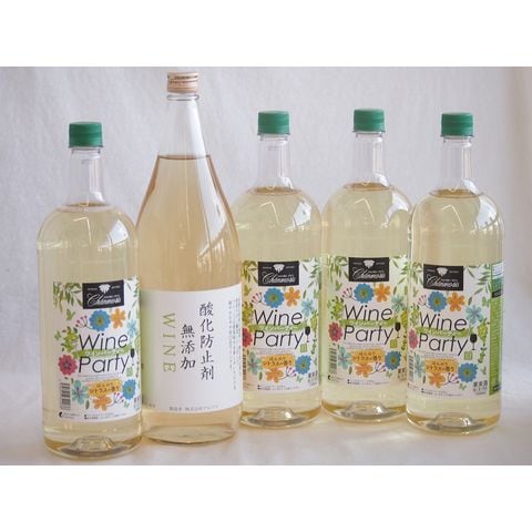 大容量ボトル5本セット(ワインパーティー 白ワイン やや辛口 酸化防止剤無添加 白ワイン やや辛口) 1500ml×4本 1800ml×1本