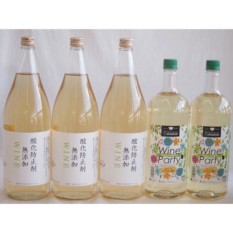 大容量ボトル5本セット(ワインパーティー 白ワイン やや辛口 酸化防止剤無添加 白ワイン やや辛口) 1500ml×2本 1800ml×3本