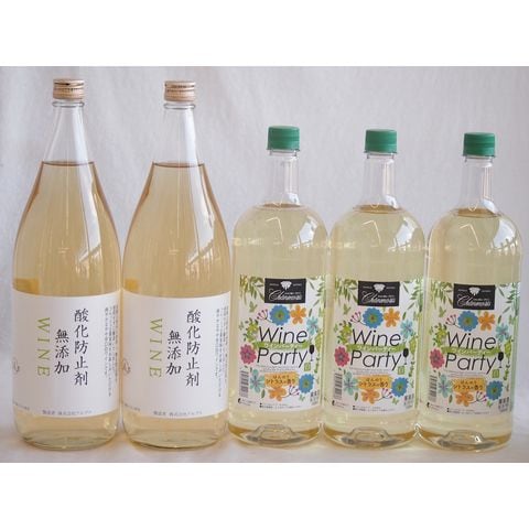 大容量ボトル5本セット(ワインパーティー 白ワイン やや辛口 酸化防止剤無添加 白ワイン やや辛口) 1500ml×3本 1800ml×2本