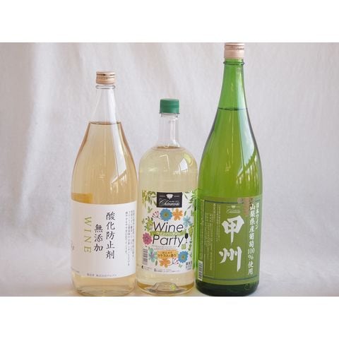 大容量ボトル3本セット(ワインパーティー 白ワイン やや辛口 山梨県産葡萄100% 甲州白ワイン やや辛口 酸化防止剤無添加 白ワイン やや辛口) 1500ml×1本 1800ml×2本