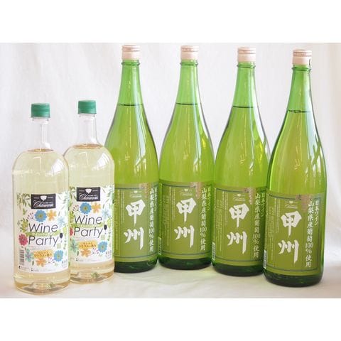 大容量ボトル6本セット(ワインパーティー 白ワイン やや辛口 山梨県産葡萄100% 甲州白ワイン やや辛口) 1500ml×2本 1800ml×4本