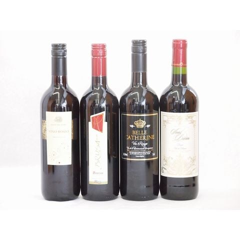 フランス×イタリア赤ワイン4本セット(サンディヴァン ルージュ(フランス) コルテ デル ニッピオ ロッソ(イタリア) ブルーサ ロッソ(イタリア) ベル キャサリン ルージュ(フランス)) 750ml×4本