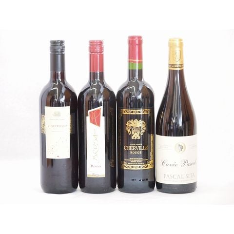 フランス×イタリア赤ワイン4本セット(シャルヴィーユ ルージュ(フランス) コルテ デル ニッピオ ロッソ(イタリア) ブルーサ ロッソ(イタリア) パスカルシータキュヴェルージュ(フランス)) 750ml×4本