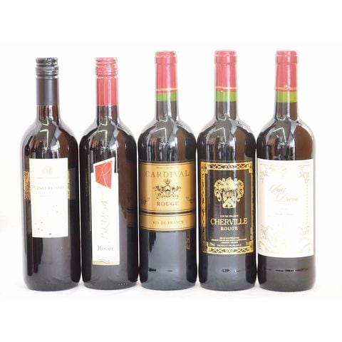 フランス×イタリア赤ワイン5本セット(カルディヴァルルージュ(フランス) シャルヴィーユ ルージュ(フランス) サンディヴァン ルージュ(フランス) コルテ デル ニッピオ ロッソ(イタリア) ブルーサ ロッソ(イタリア)) 750ml×5本