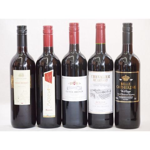 フランス×イタリア赤ワイン5本セット(コルテ デル ニッピオ ロッソ(イタリア) ブルーサ ロッソ(イタリア) シュバリエ・デュ・ルヴァン ルージュ(フランス) キャベェブレヴァン ルージュ(フランス) ベル キャサリン ルージュ(フランス)) 750ml×5本