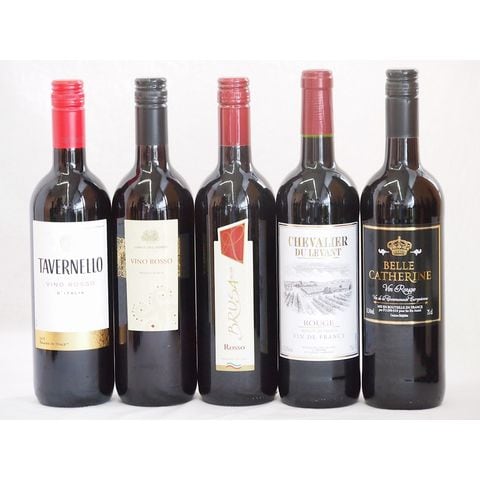 フランス×イタリア赤ワイン5本セット(タヴェルネッロ ロッソ(イタリア) コルテ デル ニッピオ ロッソ(イタリア) ブルーサ ロッソ(イタリア) シュバリエ・デュ・ルヴァン ルージュ(フランス) ベル キャサリン ルージュ(フランス)) 750ml×5