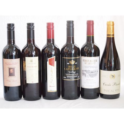 フランス×イタリア赤ワイン6本セット(ミケランジャロ ロッソ(イタリア) コルテ デル ニッピオ ロッソ(イタリア) ブルーサ ロッソ(イタリア) シュバリエ・デュ・ルヴァン ルージュ(フランス) パスカルシータキュヴェルージュ(フランス) ベル キャサリン ルージュ(フランス)) 750ml×6本