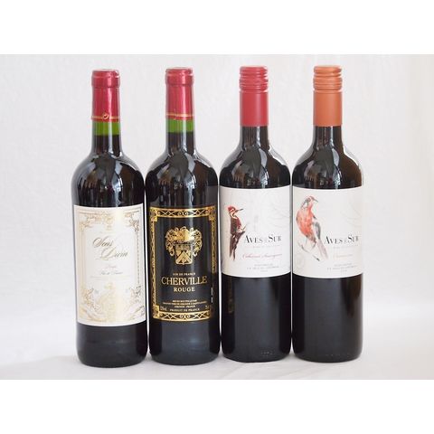 フランス×チリ赤ワイン4本セット(デルスールカベルネ(チリ) デルスールカルメネール(チリ) シャルヴィーユ ルージュ(フランス) サンディヴァン ルージュ(フランス)) 750ml×4本