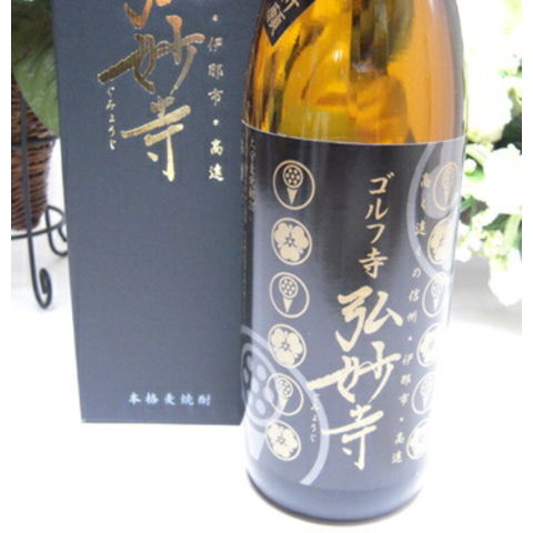 信州高遠弘妙寺は、ゴルフ寺として日本でも有名なプロゴルファーが訪れ祈願されていることで有名な寺です。そのお寺の名前をラベルにした商品です。麦100%であり、麦特有の香りがあり、まろやかで甘味、淡麗で軽やかな風味が特徴で、ライト感覚で楽しめる焼酎です。厳選した麦と天領ひたの天然水とが、長年の蒸留技術から生みだした減圧蒸留の麦焼酎です。