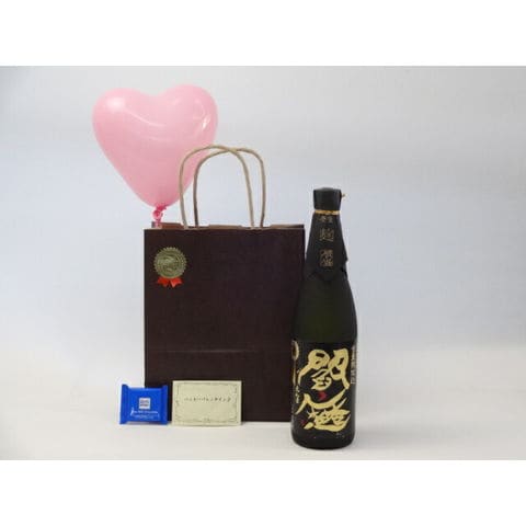 バレンタイン 焼酎セット(老松酒造 麦焼酎 黒麹・全量麹 麦焼酎 閻魔 25°720ml(大分県))メッセージカード ハート風船 ミニチョコ付き