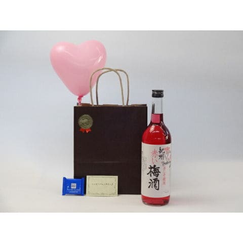 バレンタイン 風船セット梅酒セット(中野BC 紀州 赤い梅酒 720ml 12°720ml(和歌山県))メッセージカード ハート風船 ミニチョコ付き