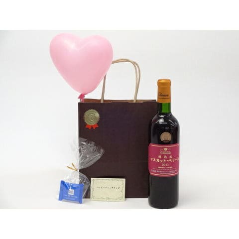 バレンタイン 風船セット国産ワインセット(シャンモリワイン 山梨県産ぶどう100% 樽熟成マスカット・ベリーA 720ml 盛田甲州ワイナリー(山梨県))メッセージカード ハート風船 ミニチョコ付き