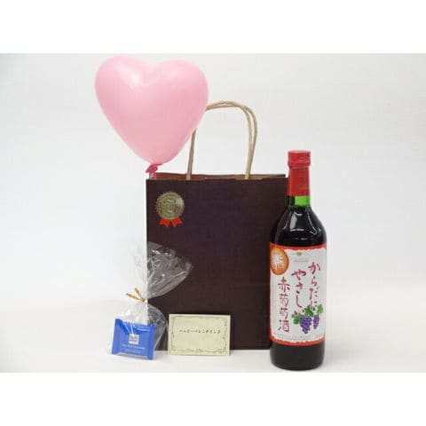 バレンタイン 風船セット国産ワインセット(シャンモリワイン からだにやさしい赤葡萄酒 赤ワイン 720ml 盛田甲州ワイナリー(山梨県))メッセージカード ハート風船 ミニチョコ付き