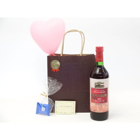 バレンタイン 風船セット国産ワインセット(シャンモリ ヴィンテージ実りの収穫 赤ワイン 720ml(山梨県))メッセージカード ハート風船 ミニチョコ付き