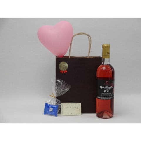 バレンタイン ワインセット(シャンモリワイン 山梨県産ぶどう100% 甲州遅摘みロゼワイン 720ml(山梨県))メッセージカード ハート風船 ミニチョコ付き