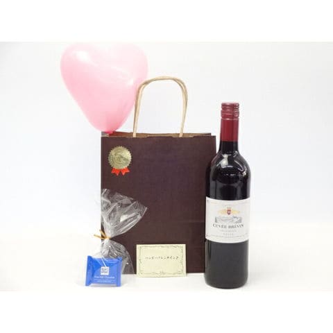 バレンタイン 風船セットフランスワインセット(キュヴェ・ブレヴァン 赤ワイン(フランス)750ml)メッセージカード ハート風船 ミニチョコ付き