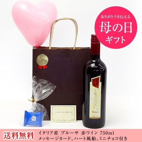 バレンタイン イタリアワインセット(チェヴィコ ブルーサ 赤ワイン 750ml)メッセージカード ハート風船 ミニチョコ付き