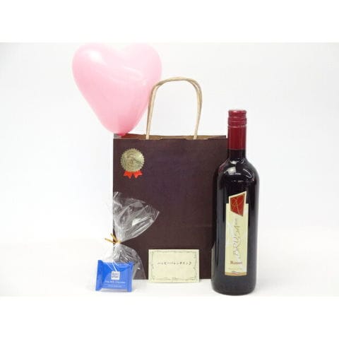 バレンタイン 風船セットイタリア赤ワインセット(ブルーサ 赤ワイン 750ml(イタリア))メッセージカード ハート風船 ミニチョコ付き