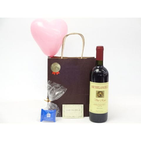 バレンタイン イタリア赤ワインセット(ミケランジェロ 赤ワイン(イタリア)750ml)メッセージカード ハート風船 ミニチョコ付き