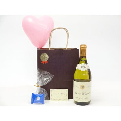 バレンタイン 風船セット フランス白ワインセット(パスカル シータ キュヴェブラン 白ワイン(フランス)750ml)メッセージカード ハート風船 ミニチョコ付き