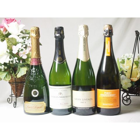 【第2弾】世界のスパークリング辛口ワイン飲み比べ!4本セット(スペイン、フランス2、イタリア)泡ワイン4本セット
