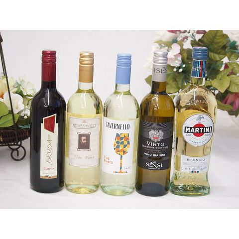 高品質イタリアワイン(赤1本、白4本)750ml×5本