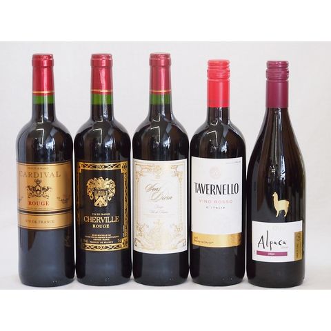 第38弾!セレクション赤ワイン5本セット (チリ1本 フランス3本 イタリア1本)計750ml×5本