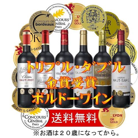 ALLダブル金賞受賞 ソムリエ厳選 フランス・ボルドー産赤ワイン6本セット