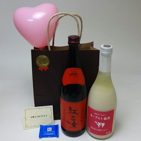 贈り物セット 福岡県2本セット(ヨーグルト梅酒 胡麻焼酎)合計720ml×2本 メッセージカード ハート風船 ミニチョコ付き 土日・祝日は休業日となります。 お値下げの交渉はしておりませんので、お問い合わせはご遠慮願います。 ★20歳未満の飲酒は法律で禁止されています。20歳未満の方に対しては酒類は販売いたしません。