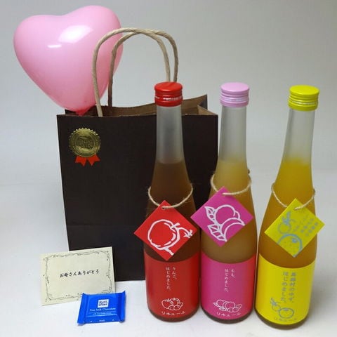 贈り物セット 果物梅酒3本セット りんご梅酒 ゆず梅酒 もも梅酒 (福岡県)合計720ml×3本 メッセージカード ハート風船 ミニチョコ付き 土日・祝日は休業日となります。 お値下げの交渉はしておりませんので、お問い合わせはご遠慮願います。 ★20歳未満の飲酒は法律で禁止されています。20歳未満の方に対しては酒類は販売いたしません。