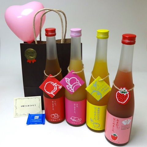 贈り物セット 果物梅酒4本セット あまおう梅酒 ゆず梅酒 もも梅酒 りんご梅酒(福岡県)合計720ml×4本 メッセージカード ハート風船 ミニチョコ付き 土日・祝日は休業日となります。 お値下げの交渉はしておりませんので、お問い合わせはご遠慮願います。 ★20歳未満の飲酒は法律で禁止されています。20歳未満の方に対しては酒類は販売いたしません。