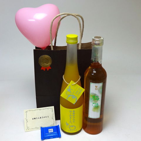 贈り物セット 梅酒2本セット ゆず梅酒 (福岡県) 百助梅酒(大分県) 計500ml×2本 メッセージカード ハート風船 ミニチョコ付き