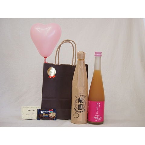 贈り物セット 果物リキュール2本セット あまおう梅酒(福岡県) 梨リキュール(大分県)合計500ml×2本 メッセージカード ハート風船 ミニチョコ付き