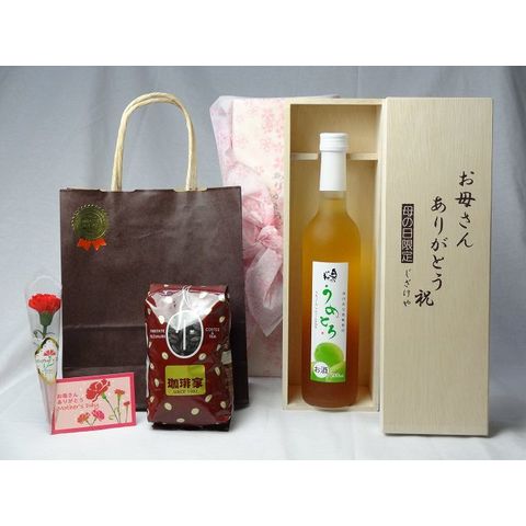 母の日 ギフトセット リキュールセット お母さんありがとう木箱セット(完熟梅の味わいと日本酒のうまみをたっぷりの梅リキュール うめとろ500ml 7%奥の松酒造(福島県)+オススメ珈琲豆(特注ブレンド200g)) 母の日カード・カーネンション付