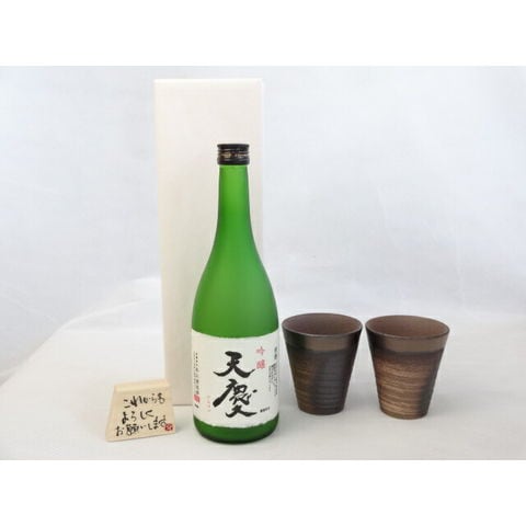 贈り物ギフトセット 榮田 清峰作直筆メッセージ木片付ペアカップセット(陶芸作家安藤嘉規作 日本製萬古焼き) 日本酒 天慶 吟醸酒 早川酒造720ml(三重県)