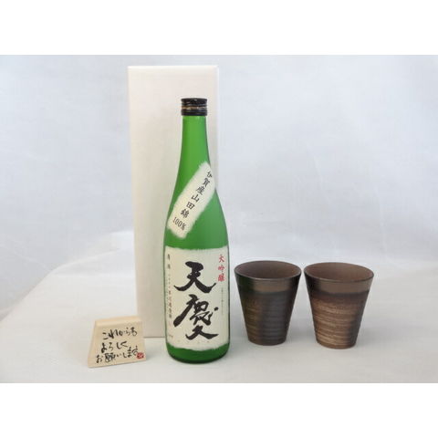 贈り物ギフトセット 榮田 清峰作直筆メッセージ木片付ペアカップセット(陶芸作家安藤嘉規作 日本製萬古焼き) 日本酒 天慶 伊賀産山田錦100% 大吟醸酒 早川酒造720ml(三重県)