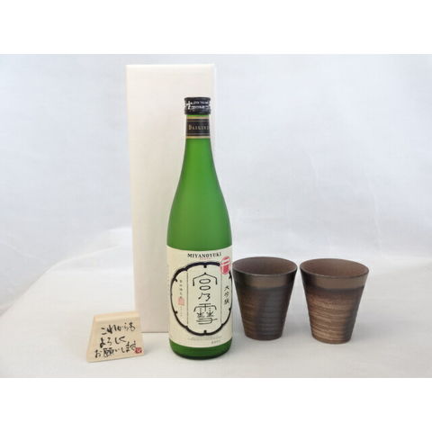 贈り物ギフトセット 榮田 清峰作直筆メッセージ木片付ペアカップセット(陶芸作家安藤嘉規作 日本製萬古焼き) 日本酒 宮の雪 大吟醸酒 宮崎本店720ml(三重県)
