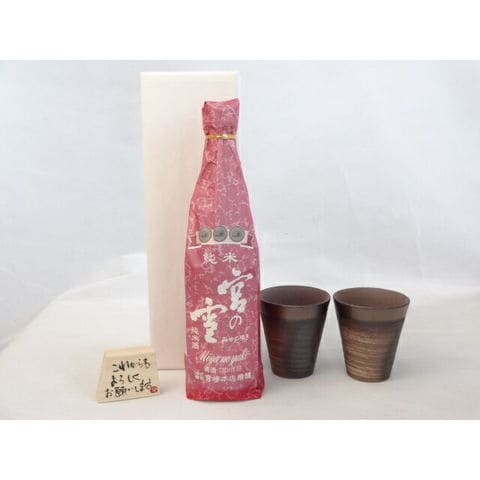 贈り物ギフトセット 榮田 清峰作直筆メッセージ木片付ペアカップセット(陶芸作家安藤嘉規作 日本製萬古焼き) 日本酒 宮の雪 純米酒 宮崎本店720ml(三重県)