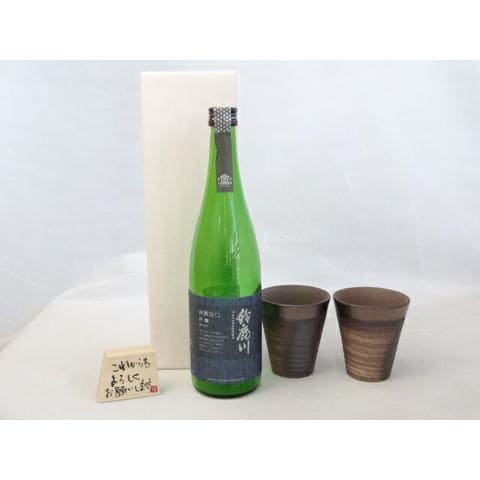 贈り物ギフトセット 榮田 清峰作直筆メッセージ木片付ペアカップセット(陶芸作家安藤嘉規作 日本製萬古焼き) 日本酒 鈴鹿川 吟醸 清水清三郎商店 720ml(三重県)