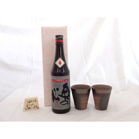 贈り物ギフトセット 榮田 清峰作直筆メッセージ木片付ペアカップセット(陶芸作家安藤嘉規作 日本製萬古焼き) 日本酒 奥の松 純米吟醸 奥の松酒造720ml(福島県)