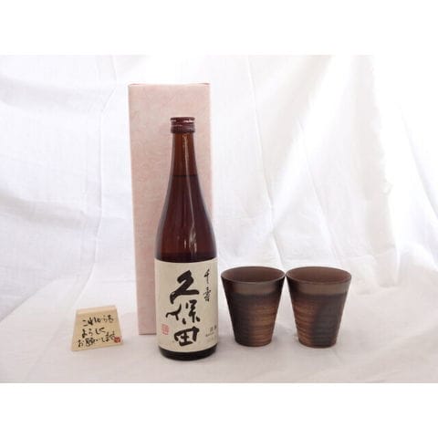 贈り物ギフトセット 榮田 清峰作直筆メッセージ木片付ペアカップセット(陶芸作家安藤嘉規作 日本製萬古焼き) 日本酒 久保田 千寿 朝日酒造720ml(新潟県)