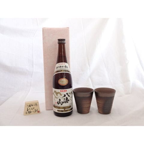 贈り物ギフトセット 榮田 清峰作直筆メッセージ木片付ペアカップセット(陶芸作家安藤嘉規作 日本製萬古焼き) 日本酒 八海山 本醸造 八海醸造720ml(新潟県)