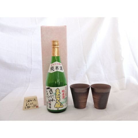 贈り物ギフトセット 榮田 清峰作直筆メッセージ木片付ペアカップセット(陶芸作家安藤嘉規作 日本製萬古焼き) 日本酒 まなぐ凧 純米酒 秋田銘醸720ml(秋田県)