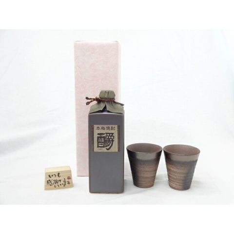 贈り物ギフトセット 榮田 清峰作直筆メッセージ木片付ペアカップセット(陶芸作家安藤嘉規作 日本製萬古焼き) 米焼酎 房の露 30年古酒ブレンド しょう エクセレンス 35度 720ml(熊本県)